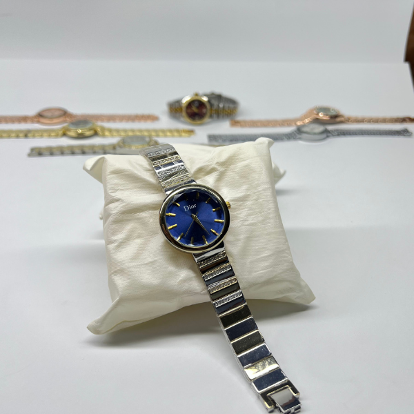 Introducing the Crystal Studded Blue Dial Watch, a stunning blend of elegance, sparkle, and everyday luxury. Designed with Premium Stainless Steel and embellished with Embedded Crystals, this timepiece stands out with its bold Blue dial and shimmering crystal hour markers.